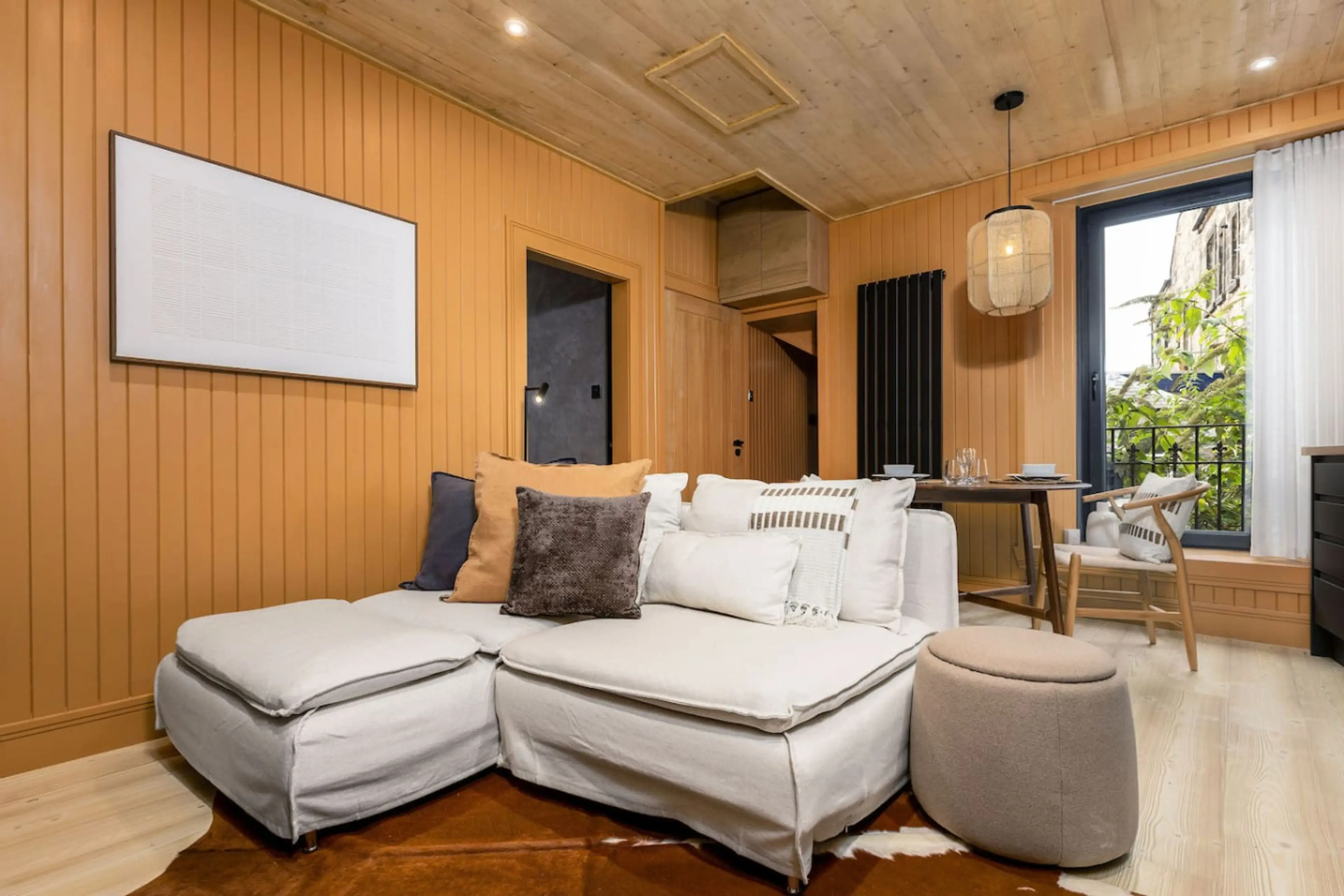 Discover our Highland Retreat, a stylish Scottish-Scandi city centre apartment in Stirling. Featuring a luxurious superking bed, stunning wooden-clad ceilings, Venetian plaster walls & brushed concrete accents, this high-spec retreat offers a modern kitchen, cosy living space with 50" TV & luxury ba...