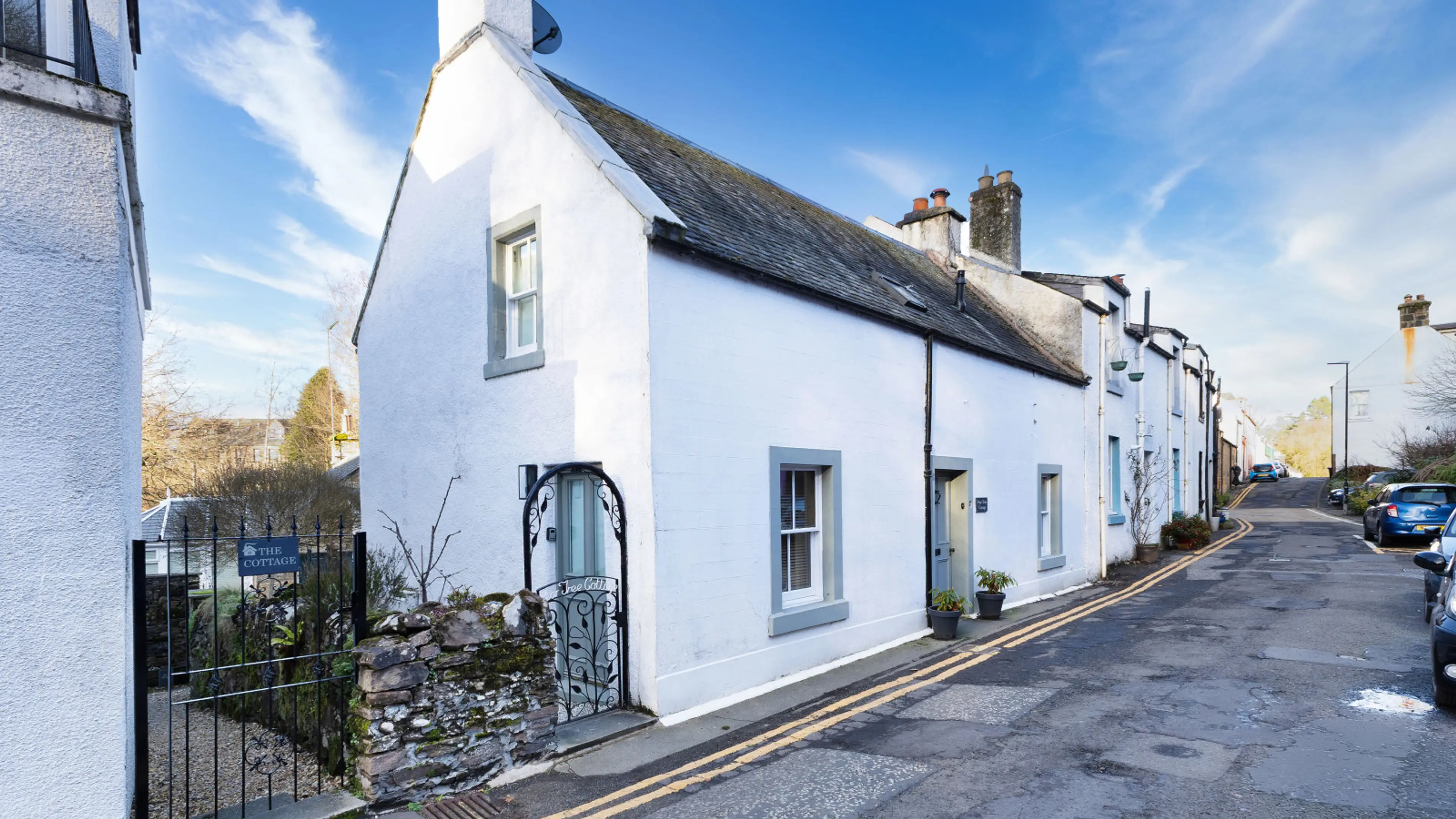 Stay at Pear Tree Cottage, a stylish 3-bed retreat in the heart of Dunblane, within easy walking distance of the town centre. Enjoy a cosy living room with woodburner fireplace, fully equipped kitchen with dining for x5, utility room, & 3 comfortable bedrooms dressed in crisp white linens. Relax in ...